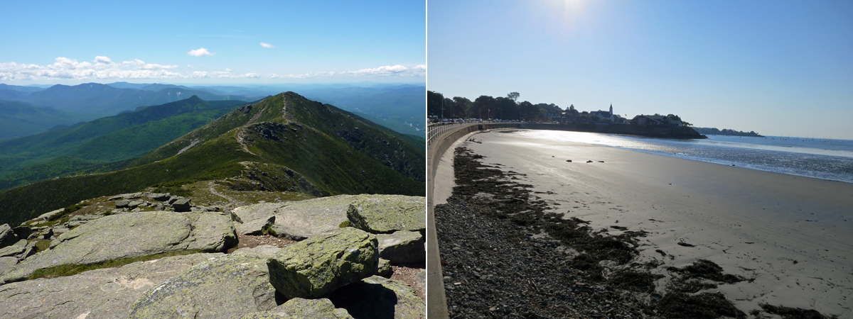 My training locations so far. Week 1–Hiking the Whites. Week 2–Running along the Atlantic.
